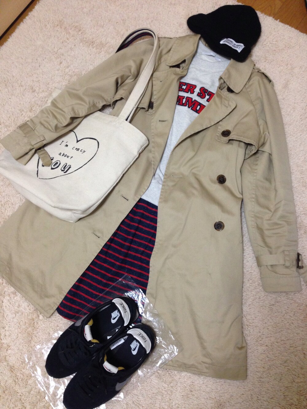トレンチコート…LOWRYS FARM スウェット…thpry+color スカート…G.U ニット帽…LOWRYS FARM トートバッグ…Banner Barrett x Rina Tanaka スニーカー…NIKE 今日のコーデ♡ とことんカジュアル! 武智志穂ちゃんのブランドthpry+colorのスウェットを初めて着てみました☻ サイズ感も小さめで可愛い!お気に入り♡
