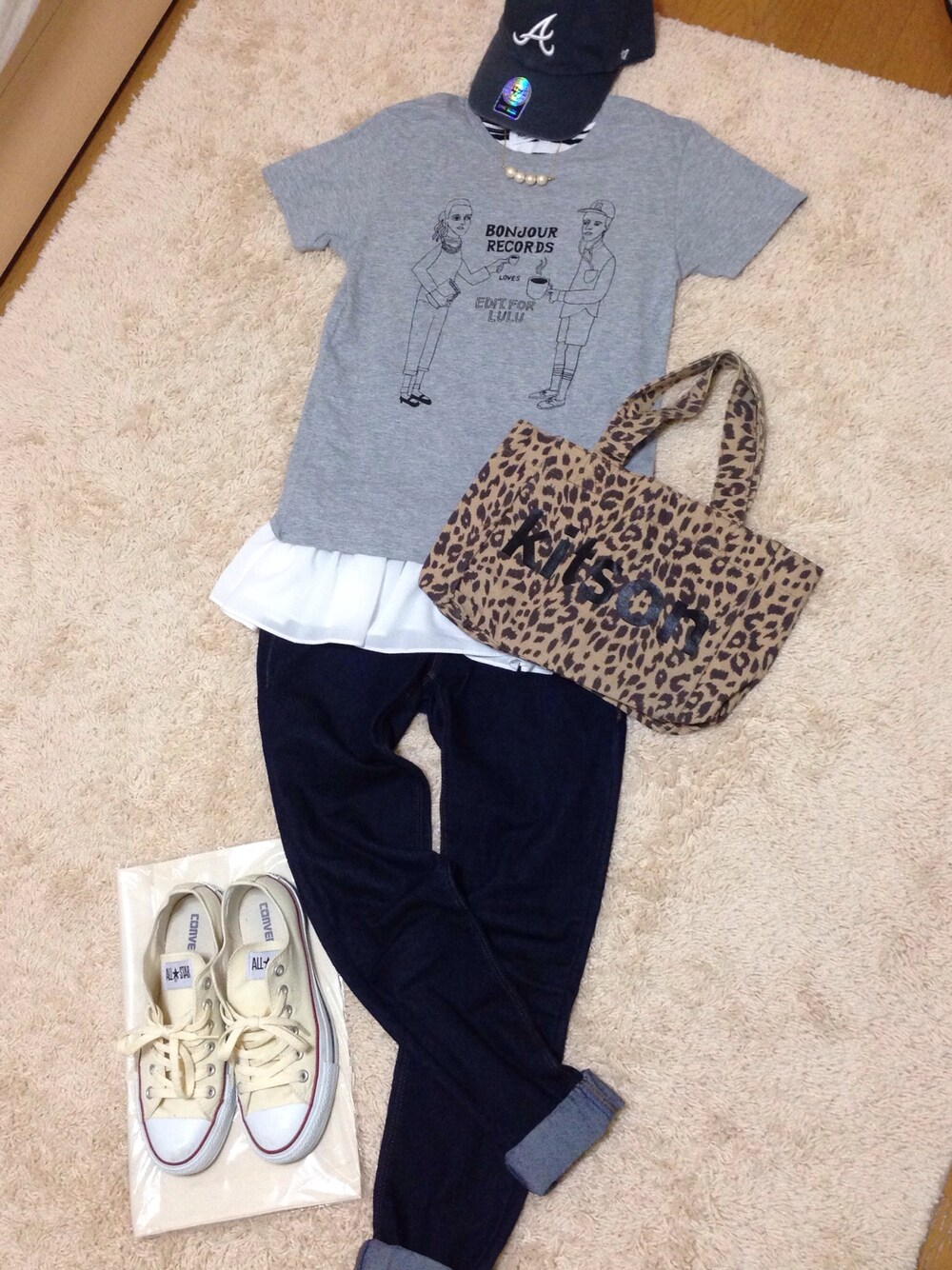 Tシャツ…Edit for LuLu タンクトップ…DHOLIC デニム…Bershka キャップ…ノーブランド ネックレス…ノーブランド バッグ…kitson スニーカー…コンバース お気に入りすぎるTシャツ💋 ヒョウ柄のバッグ、挑戦です!