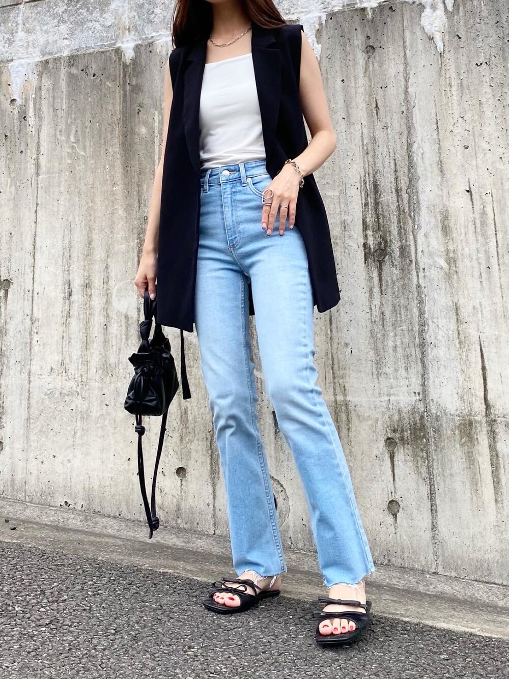 キャミソール以外 ALL ZARA コーデ ˎˊ˗ ZARAの大人気 スリットベストのブラックを着てます♪ このベストの使い勝手の良さは ものすごくって!!!! 毎日でも着れるくらい 着回し力抜群のベストです☺︎ フレアデニムもZARAので 低身長さんにはかなりおすすめです!!