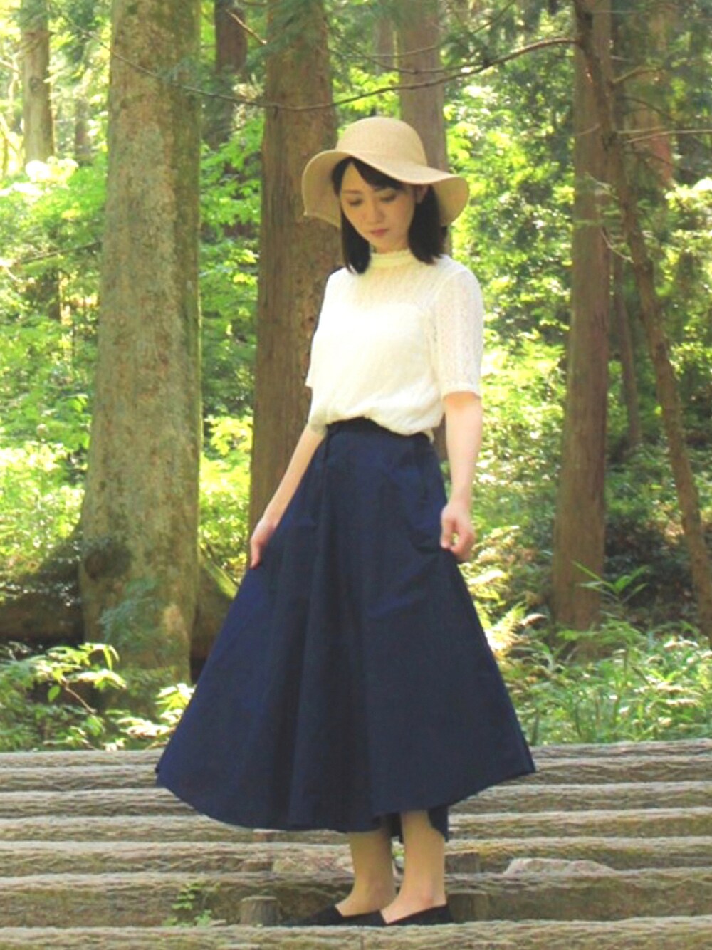 レーストップス×ロングスカート 帽子を合わせてみました👒 ⭐️インスタ⇨@_mamitan_