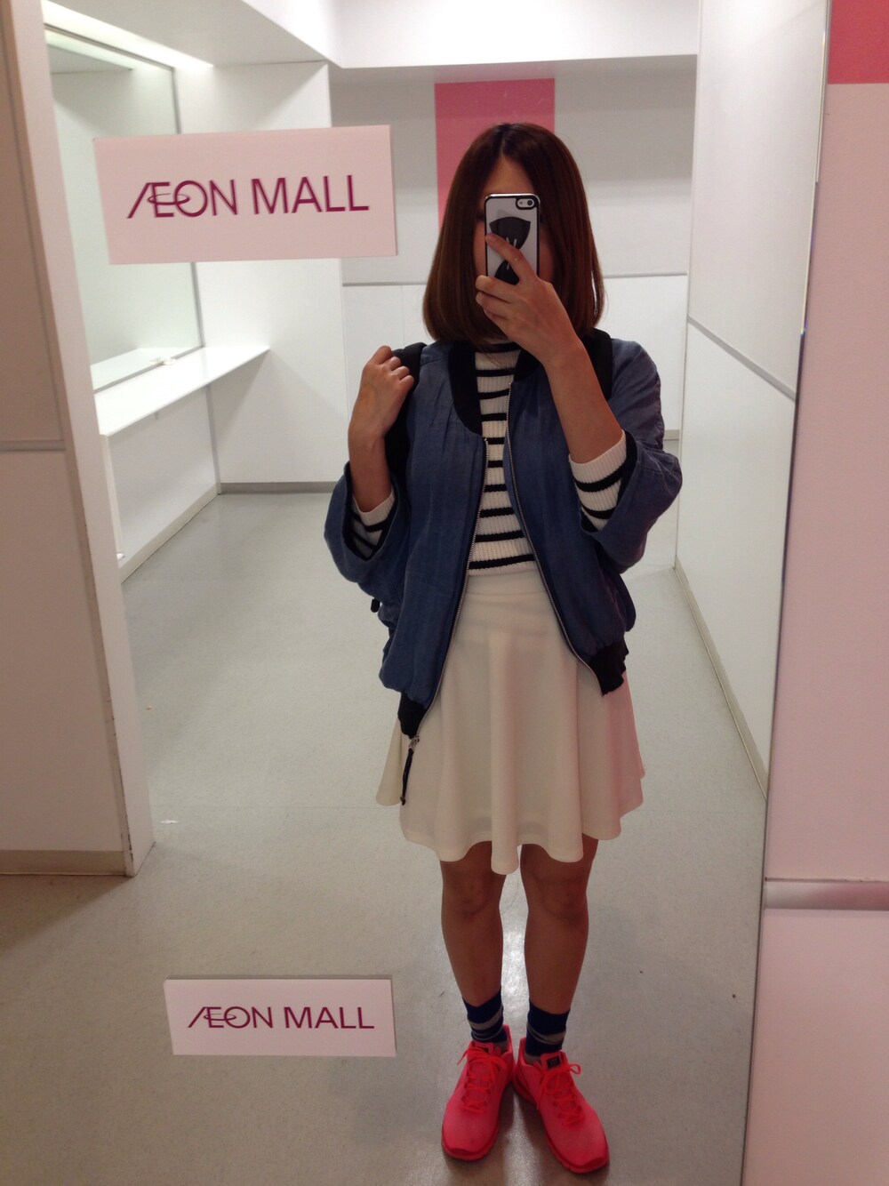 アウター:JEANASIS トップス:GU スカート:GU スニーカー:NIKE リュック:OUTDOOR