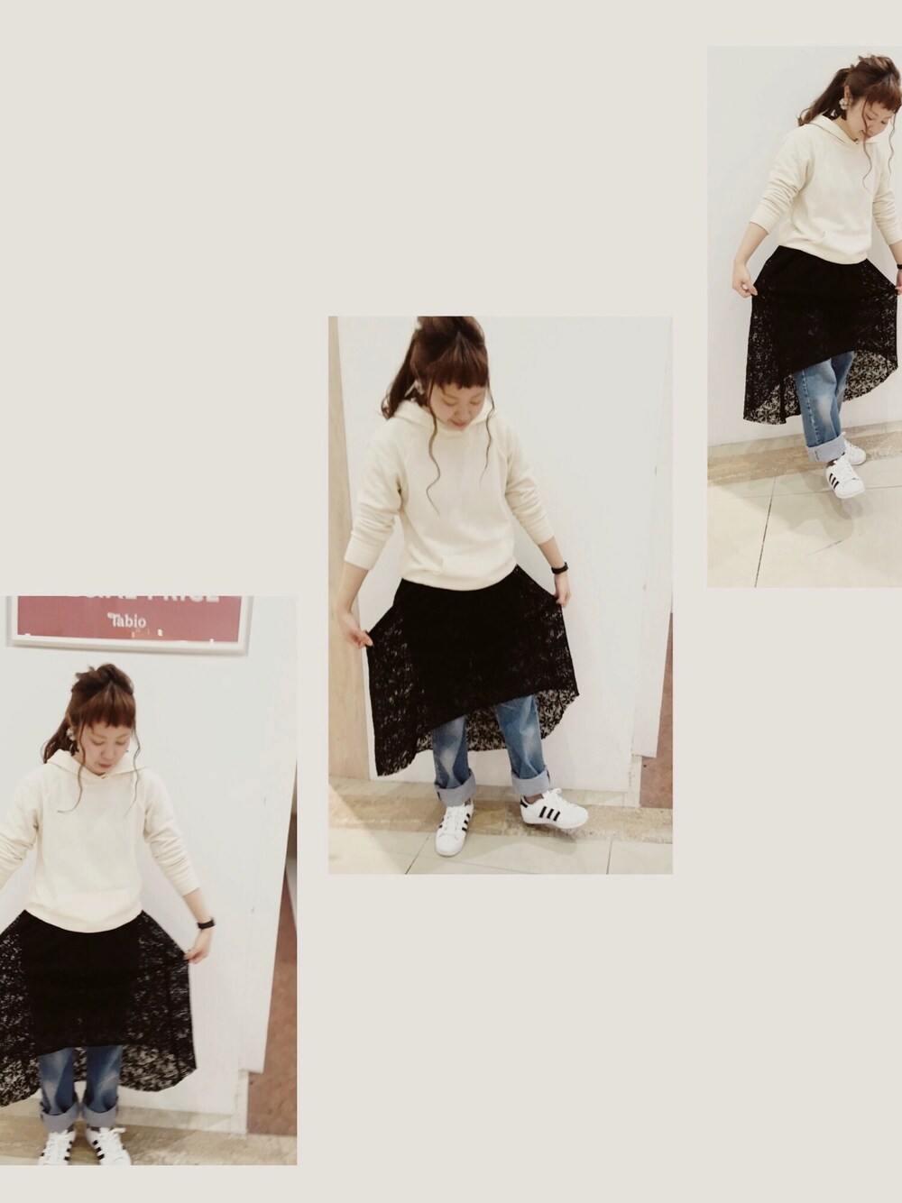レーススカート × デニム . 春コーデ .
