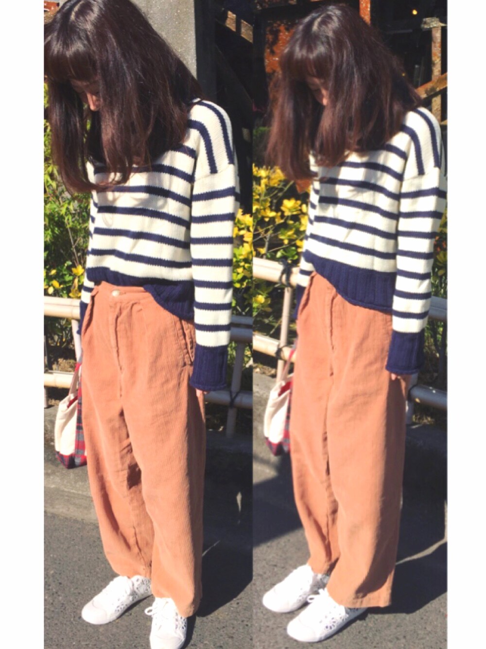 . ニット:韓国 コーデュロイパンツ:KBF レーススニーカー:韓国 コーデュロイブームな今日この頃. #ニット #ボーダー #コーデュロイ #コーデュロイパンツ #kbf #スニーカー #韓国ファッション #靴下屋 #スニーカーコーデ