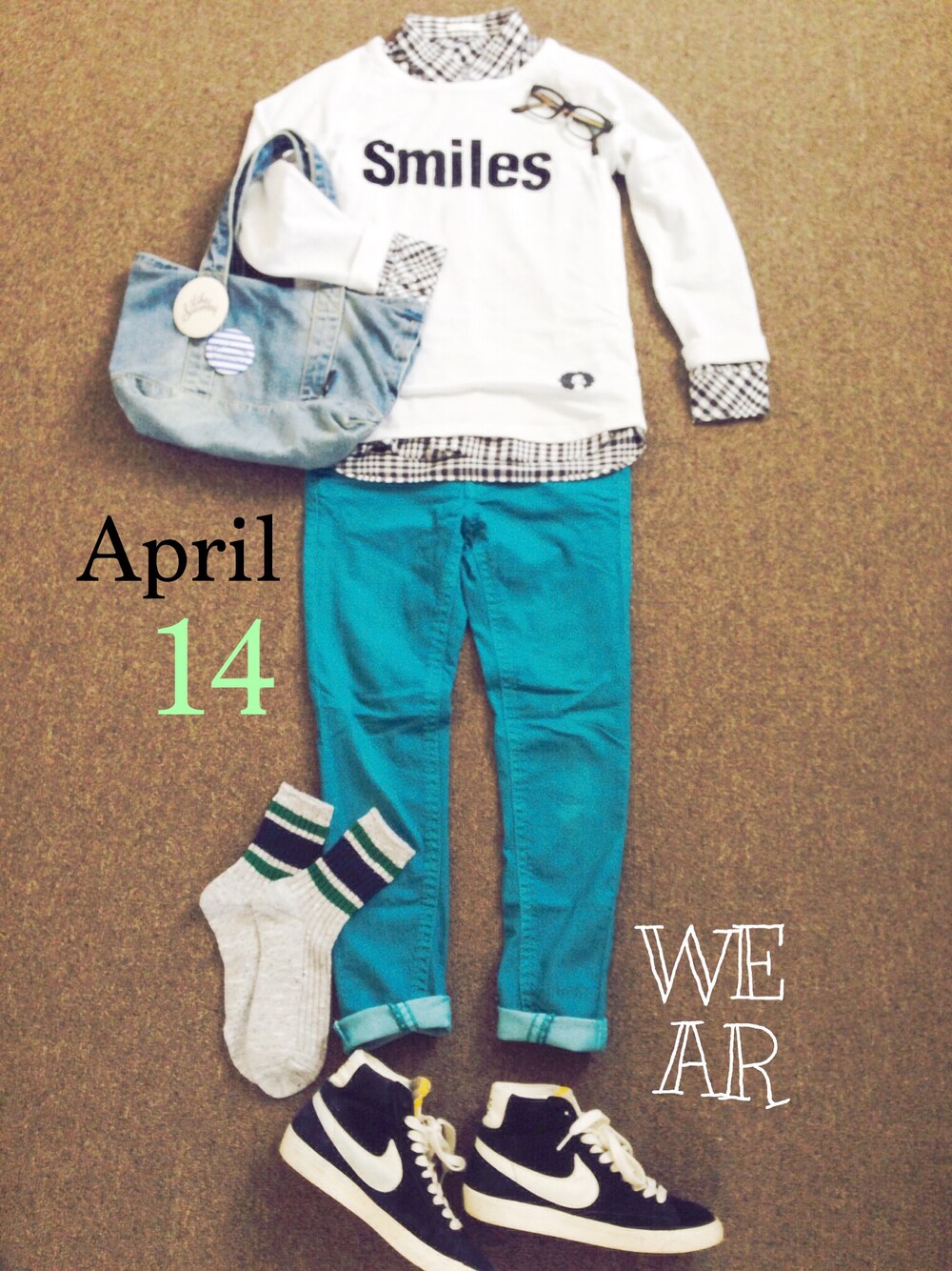 トップス:Laundry シャツ:GU パンツ:Rodeocrowns めがね:sabae パンツのカラーがお気に入り♡