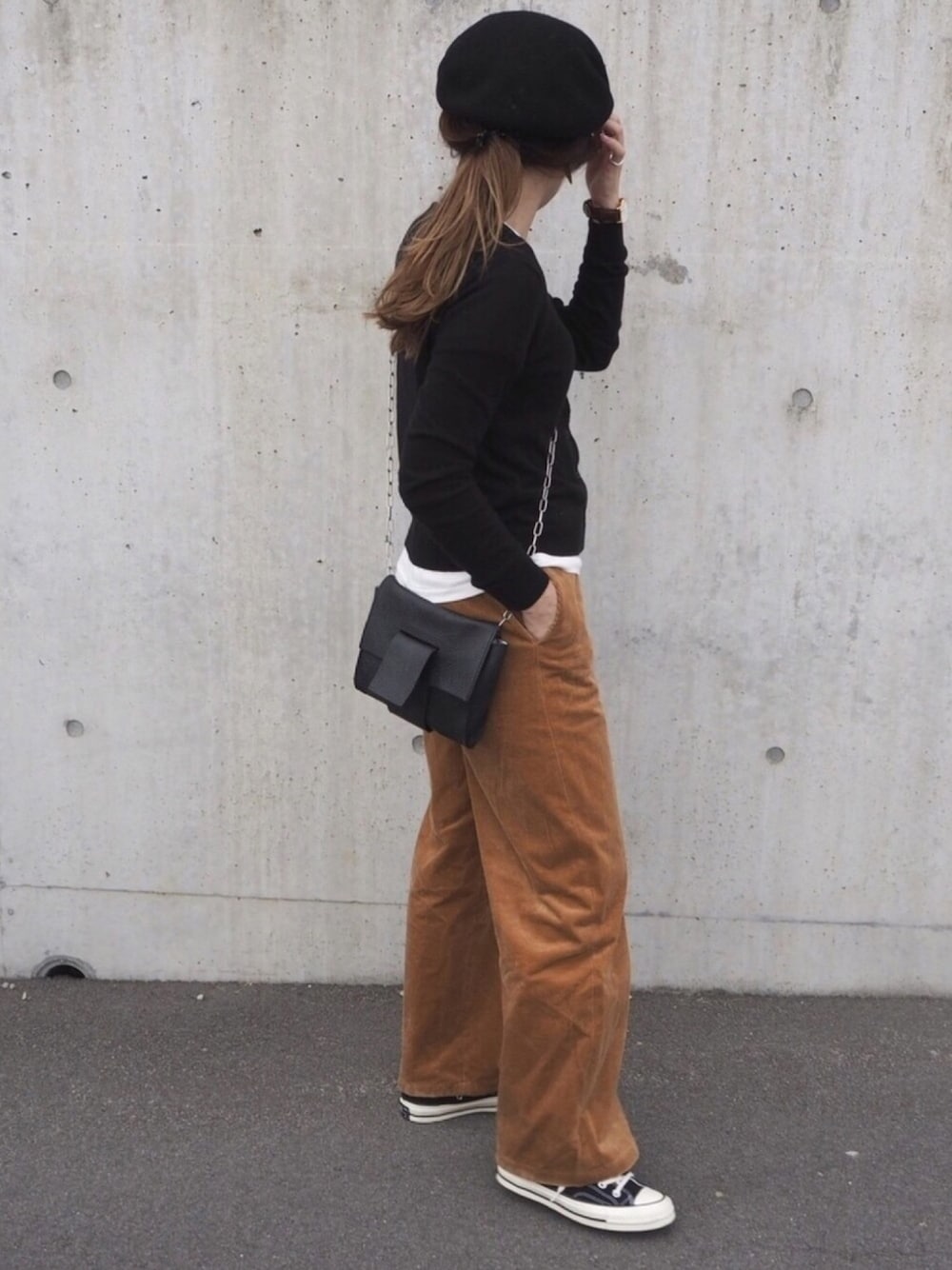 黒とキャメルの組み合わせだいすき。 白Tチラ見せ👀♡