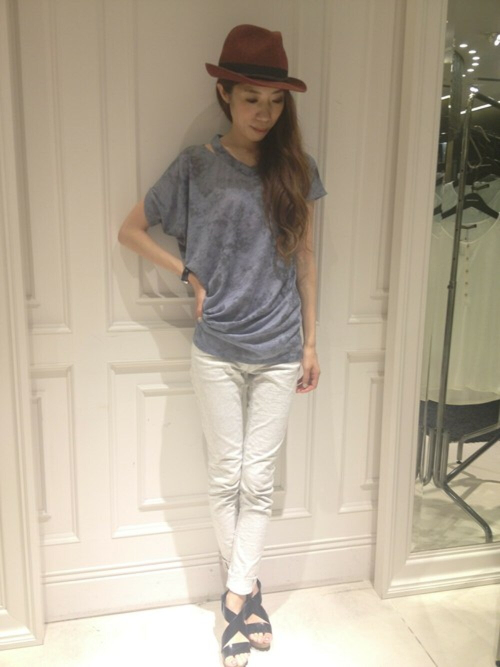 MAYUMI(アバハウスルージュヴィフラクレ三井アウトレットパーク 滋賀竜王店(MEN'S))のTシャツ/カットソー「★シルバーライトムラ箔変形Tシャツ」を使ったコーディネート