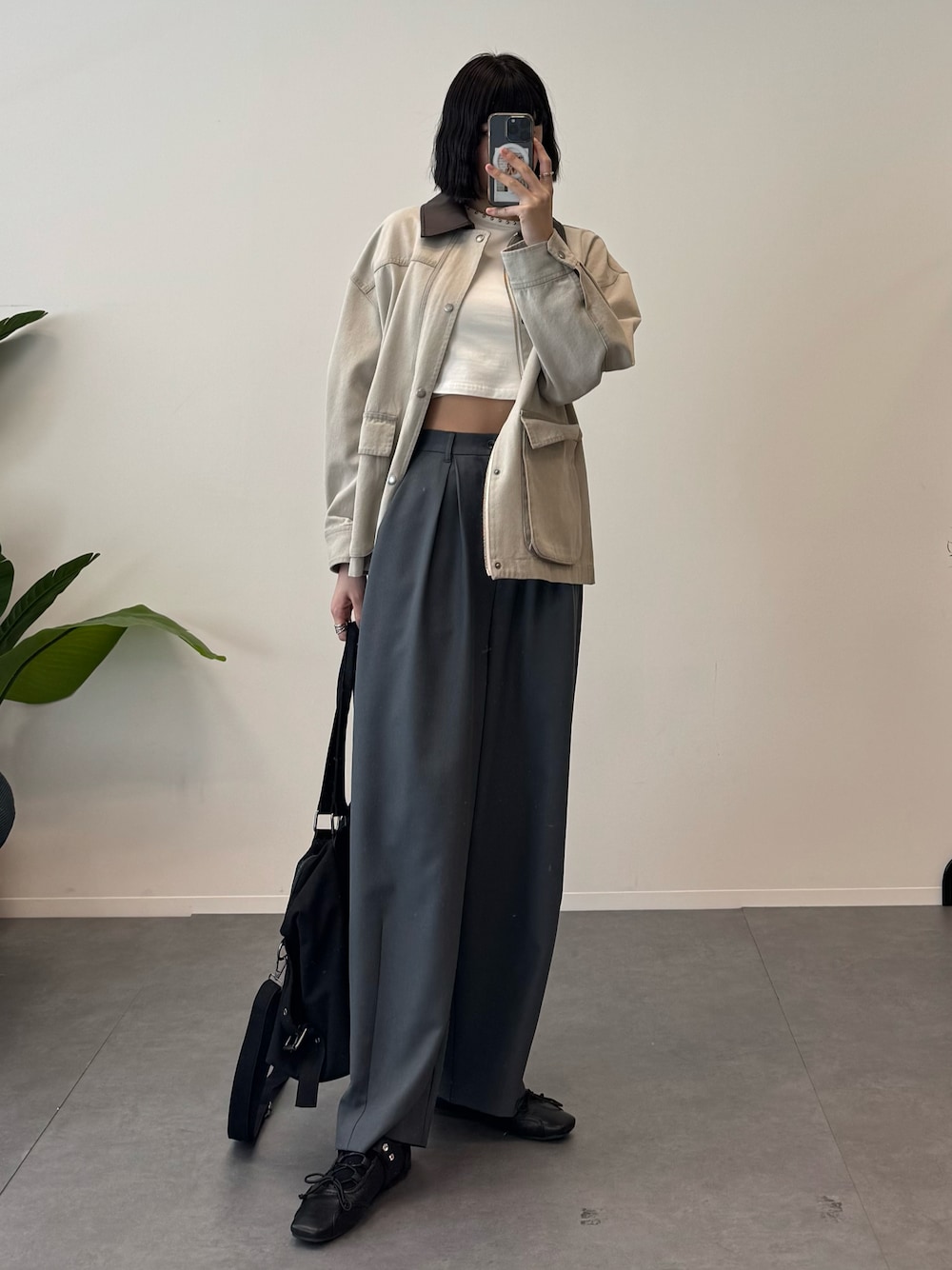 manami(MONO-MART)のデニムジャケット「【anyway.シリーズ】配色襟デニムファティーグ(洗える)ジャケット〈セットアップ対応〉」を使ったコーディネート