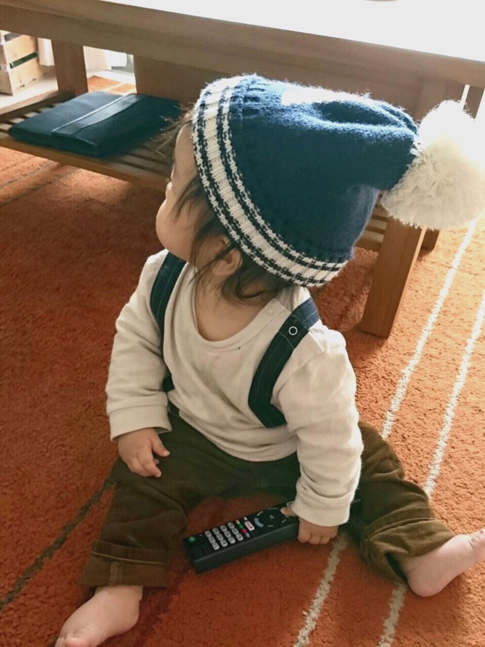 リモコンだいすき息子 ☻ バンバン切り替わるTVに夢中… 💭 ばあばにもらった帽子とパンツコーデ ☻