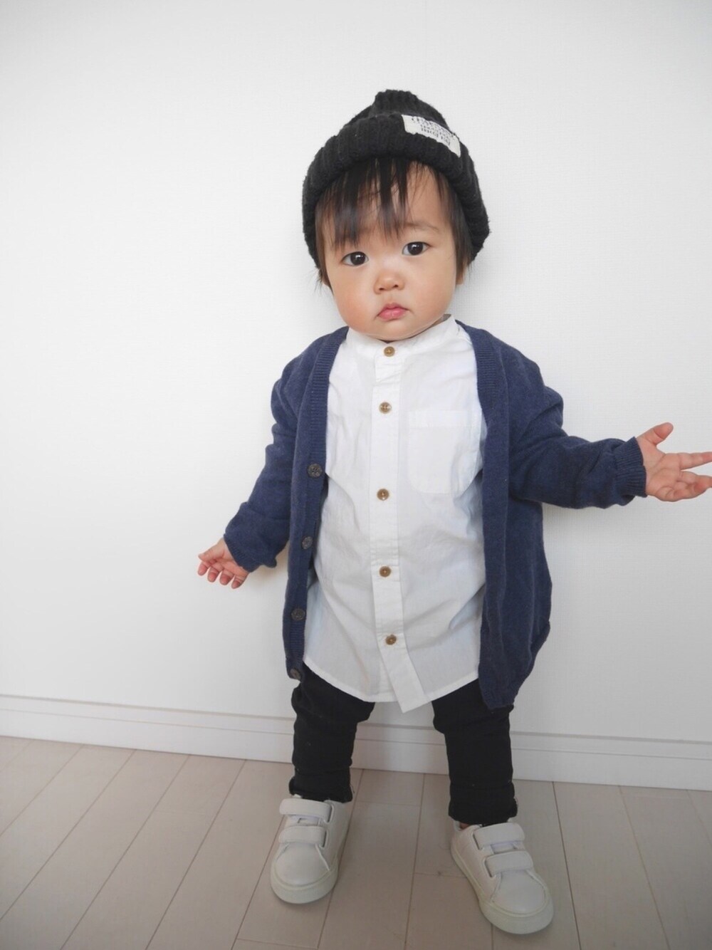 スタンドカラーシャツ ☺︎ 丈が長めでかわいい ☺︎ . 最近息子が寝てる間にネットで 春服をチェックするのが楽しいです… 💓 お買い物いきたいな〜〜 (^_^)