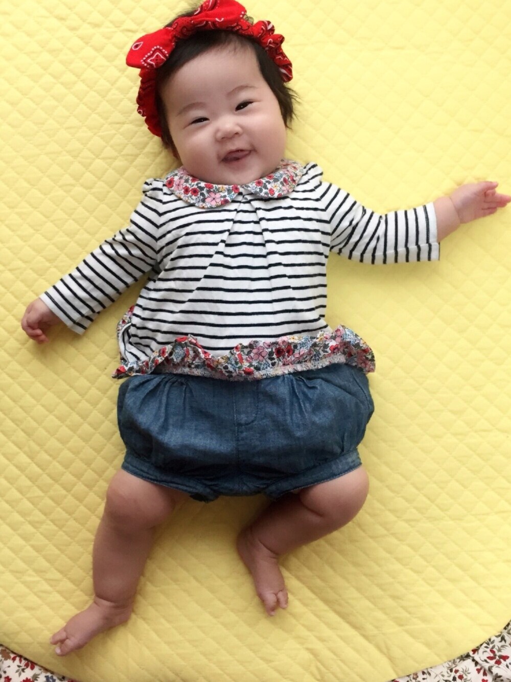 2回目投稿🌱 フォロー、コメント、♡ありがとうございます😊💛 始めたばかりですがとても嬉しいですね😂😂 みなさんのオシャレな投稿も参考にさせて頂いてます✨ ・ ハンドメイドのバンダナ柄ヘアバンドは100均の生地で作りました🎀 お揃いで自分のヘアゴムも🌻 ・ 今日はマグマグで麦茶を飲ませてみましたが飲めませんでした👶👶