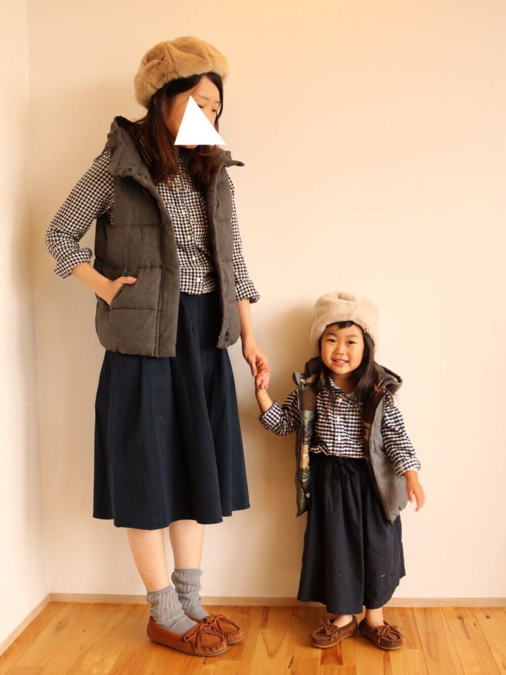 親子コーデ\( ¨̮ )/ ベスト×ギンガムシャツ✨ ベスト初めて買ったんですが結構暖かい! そしてギンガムチェックやっぱ好きだなぁー♡ 私事ですが、 4月初め頃に家族が増えます( ¨̮ ) 写真ではわかりにくいかな? どんどん着れる服がなくなって、このスカートも結構ハイウエストで強引に履いてる😂笑 前回は夏の妊婦だったので服なんて適当だったけど、今回は冬を越えなくては! とりあえず無印レギンスを買い足しました♩ どれだけできるかわからないけど、4月まで妊婦の登場にお付き合いいただけると嬉しいです♡