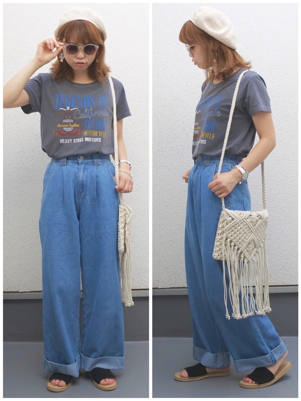 ワイドパンツ着回しコーデ♡ ベレー帽が壁と同化してしまってる𓀢 𓀤 インスタ→→→maarimochan