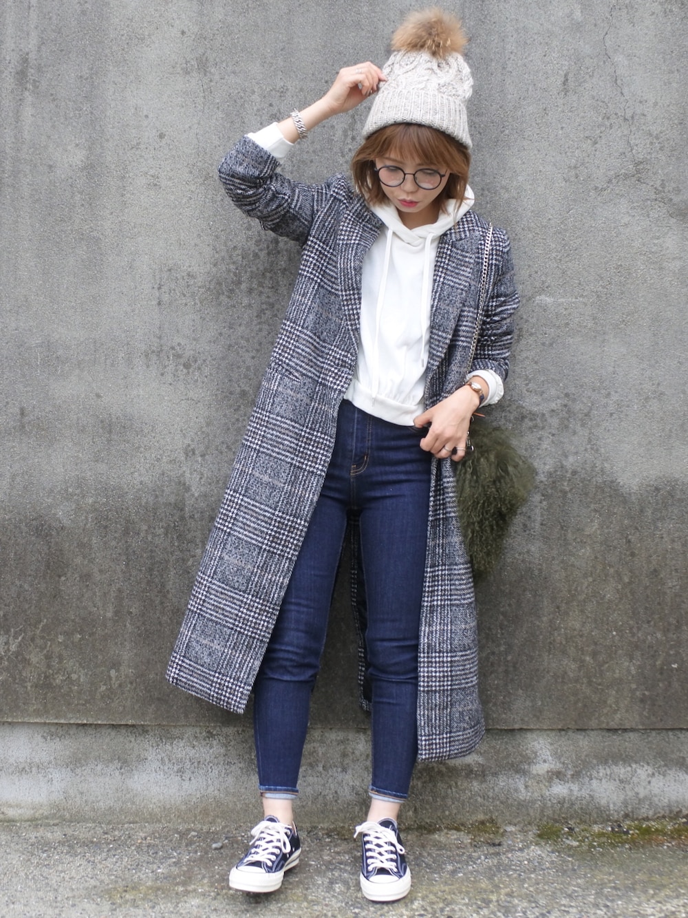 OVoVOさんのグレンチェックコート♡ パーカー合わせでカジュアルに☝︎✧ インスタ→→manamiiin___