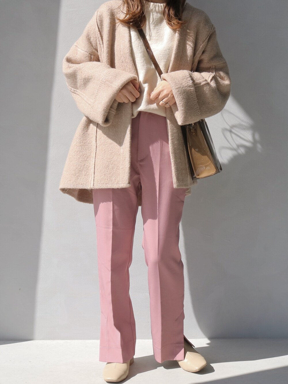 春っぽくピンクとベージュ🌸 このパンツ、ホンマに細見えで 会う人みんなに褒められる🥰