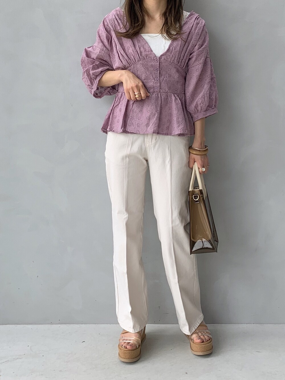 ウエストきゅっなデザインが 細見えさせてくれるブラウス♡ そしてパープル可愛い🍇