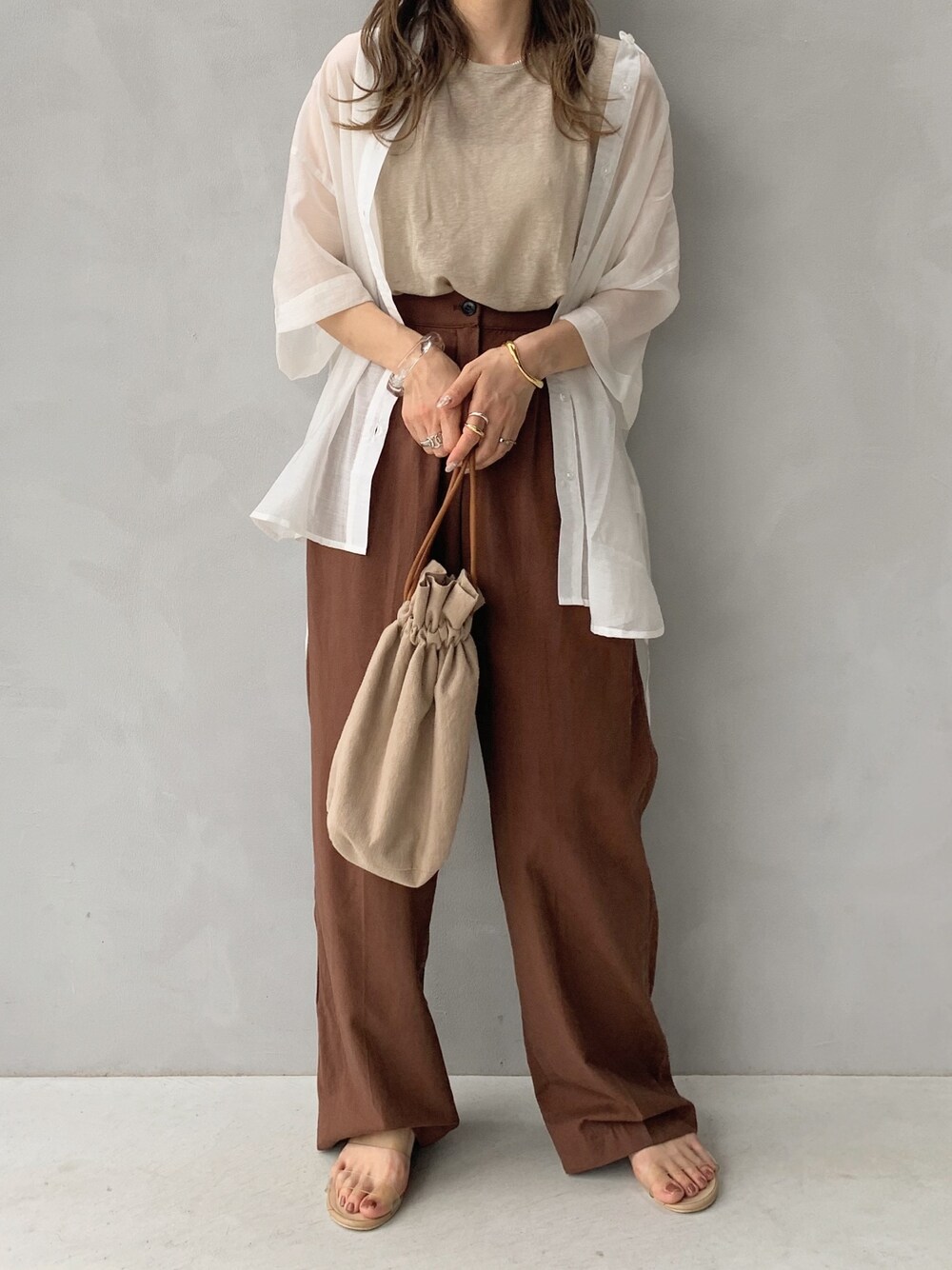 maamin♡のシャツ/ブラウス「【WEB限定】バンドカラー・BIGシルエット半袖シアーシャツ」を使ったコーディネート