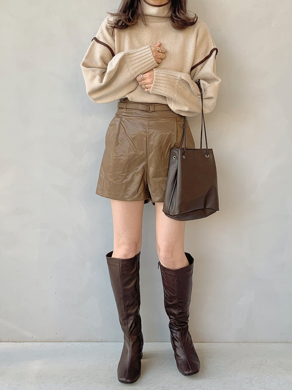 maamin♡のニット/セーター「パイピングボリュームスリーブタートルニット / AUNTMARIE'S」を使ったコーディネート