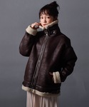 maamin♡のムートンコート「フェイクレザー パイピング フェイクムートン B3 ボアブルゾン」を使ったコーディネート