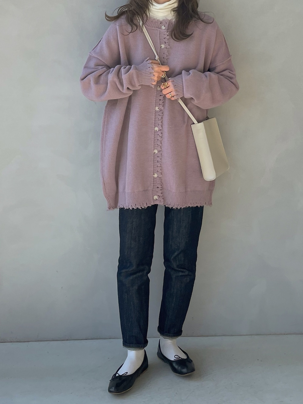 maamin♡のニット/セーター「【新色登場】4WAYルーズタッセルダメージニットカーディガン」を使ったコーディネート