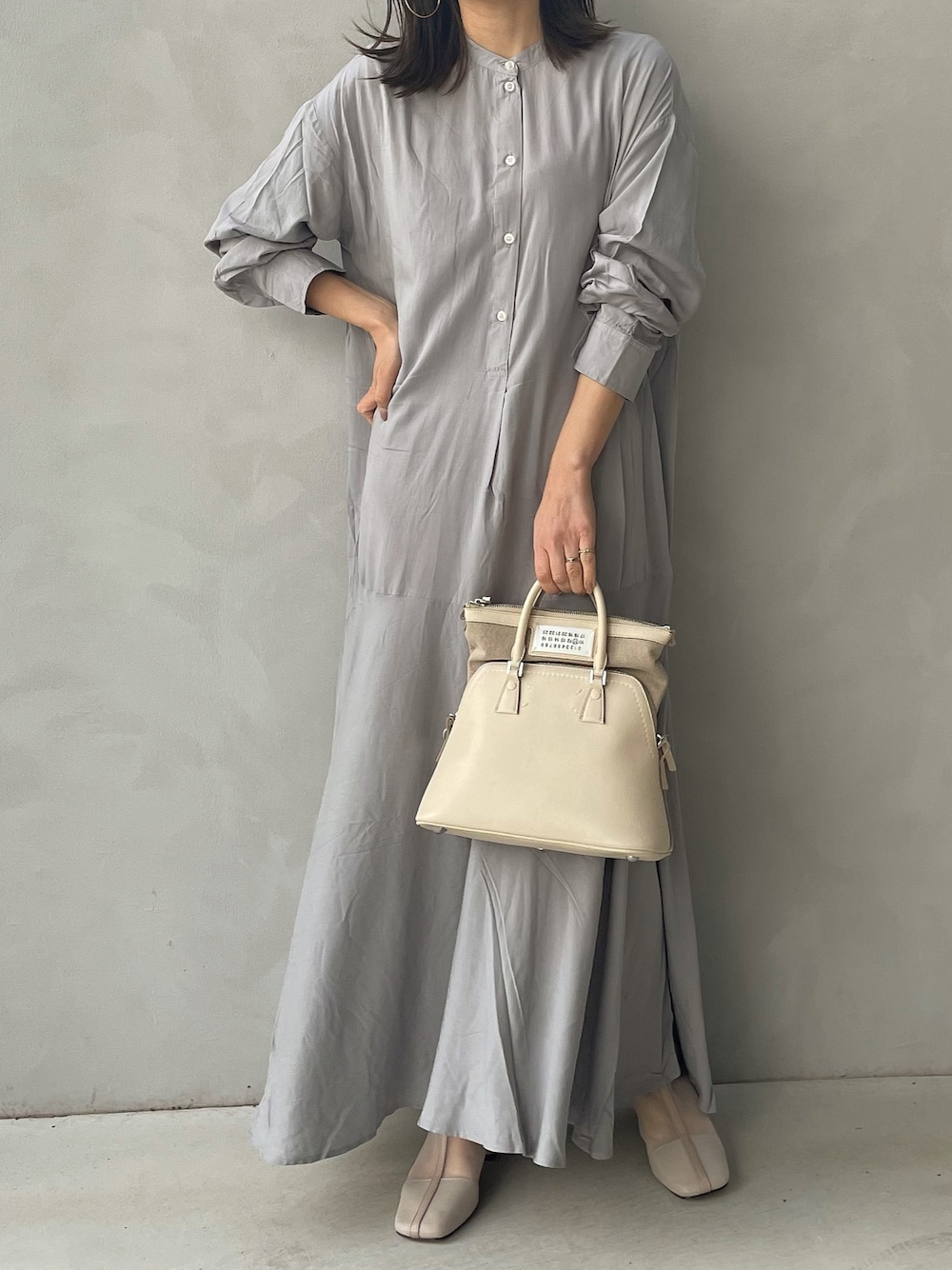 maamin♡のシャツワンピース「裾フレアロングワンピース」を使ったコーディネート