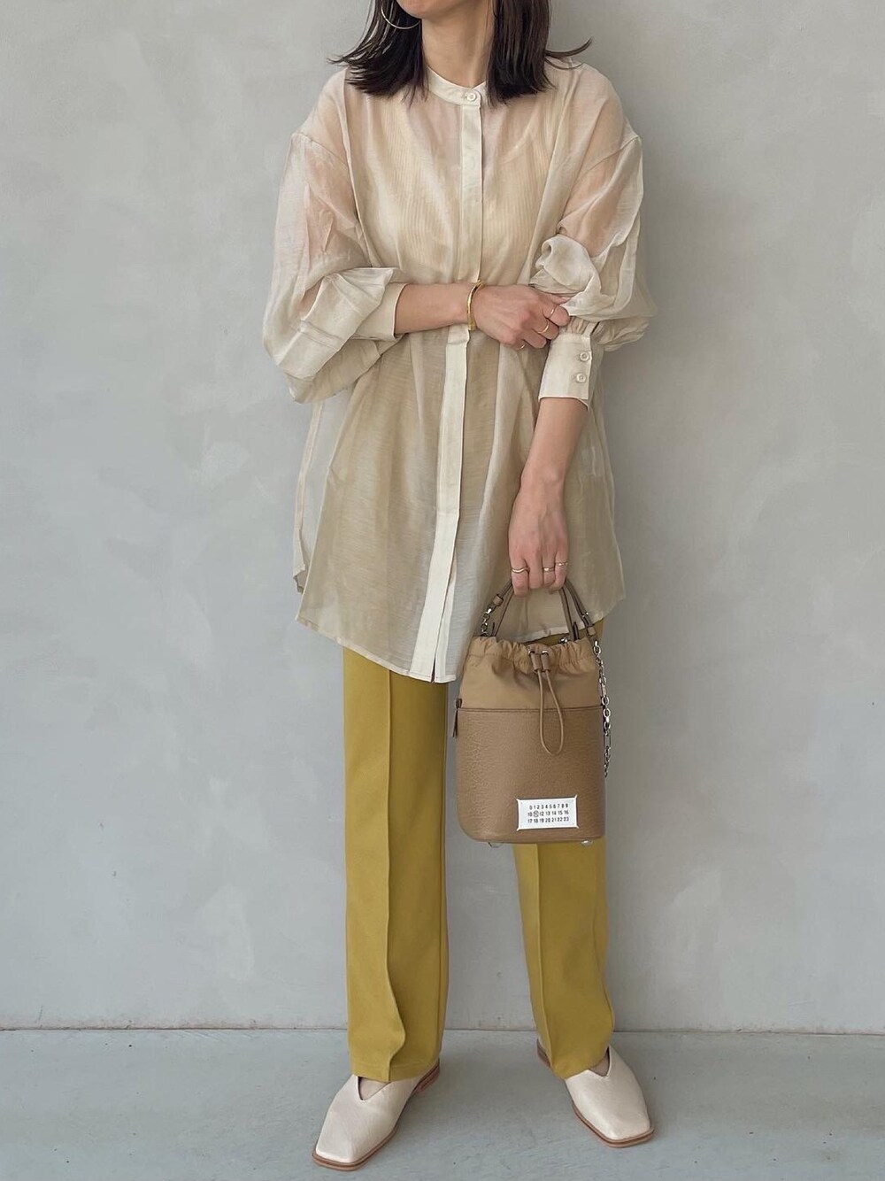 maamin♡のシャツ/ブラウス「バンドカラーボリュームスリーブシアーシャツ」を使ったコーディネート