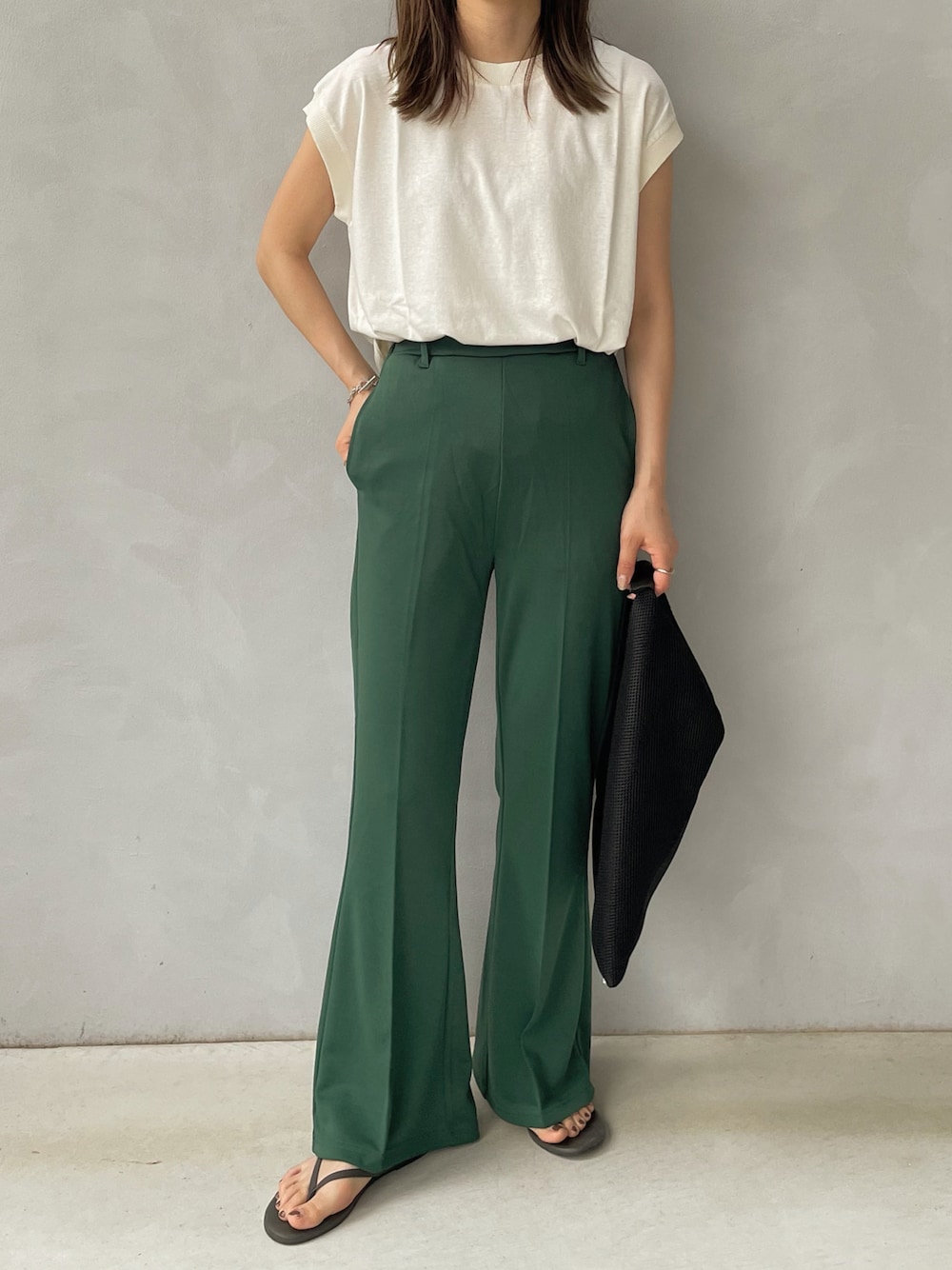 ずっと挑戦したかったグリーンのパンツ🍐 プチプラやのにフレアデザインが綺麗🥺