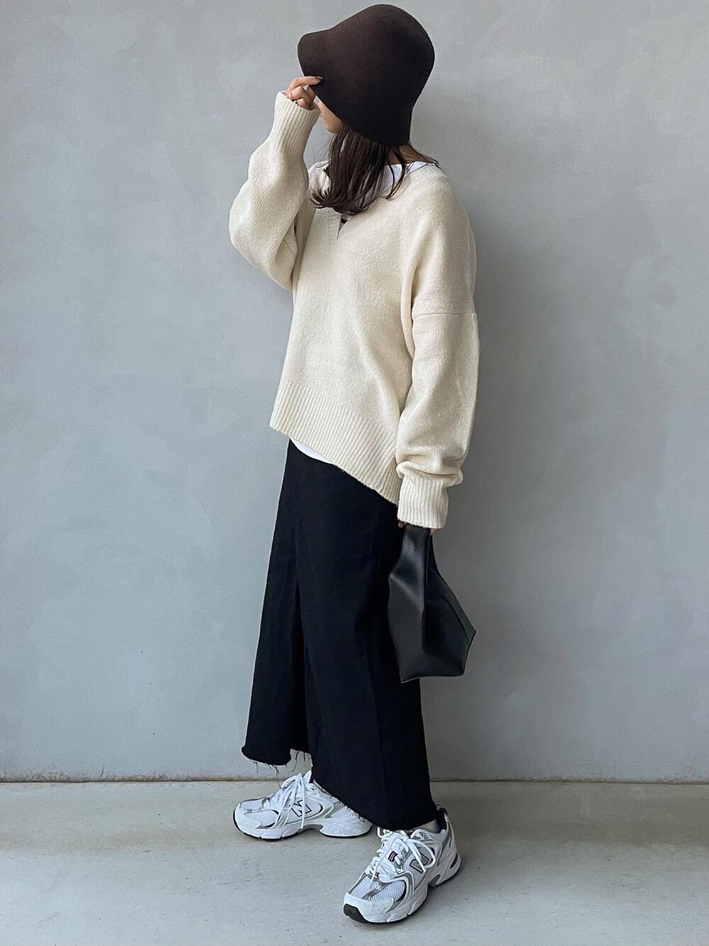 maamin♡のニット/セーター「オーバーサイズ 深Vネックニットプルオーバー」を使ったコーディネート