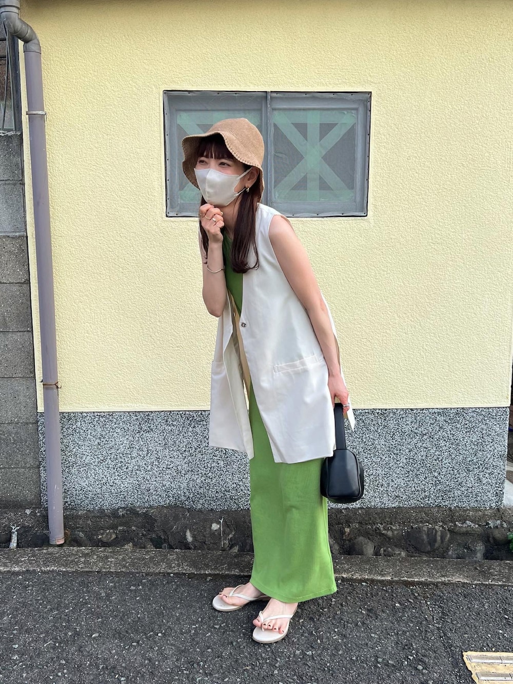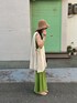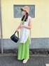 ワンピにベスト合わせの楽ちんコーデ👒🍈 サイドリボンが可愛いし、他の色も可愛かった〜 ZOZO限定販売してるみたいです🧺