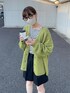 久しぶりのグリーン🐢🐊🪴 ⠀ カジュアルにも綺麗めにも着回し力抜群のシャギーカーディガン! 大好きボーダーとショートパンツ合わせにしてみた〜