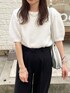 今の時期にぴったりな半袖ニット🧶🤍 パフスリーブが女子っぽくしてくれます🫶🏻 スニーカー合わせてカジュアルに着ていただくスタイルもおすすめです☺️