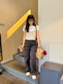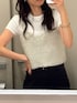 ホワイト系のベストを着用したレディースの秋コーディネートの3枚目の写真