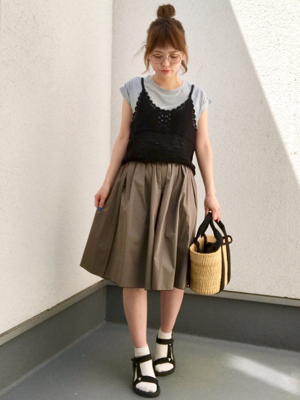 編み編みのレースキャミが可愛いです♡ スカート合わせにしたんですが 甘くなりすぎないように 足元はスポサン合わせてみました*॰ ( ¨̮ ) ॰*✩ インスタ→→maarimochan
