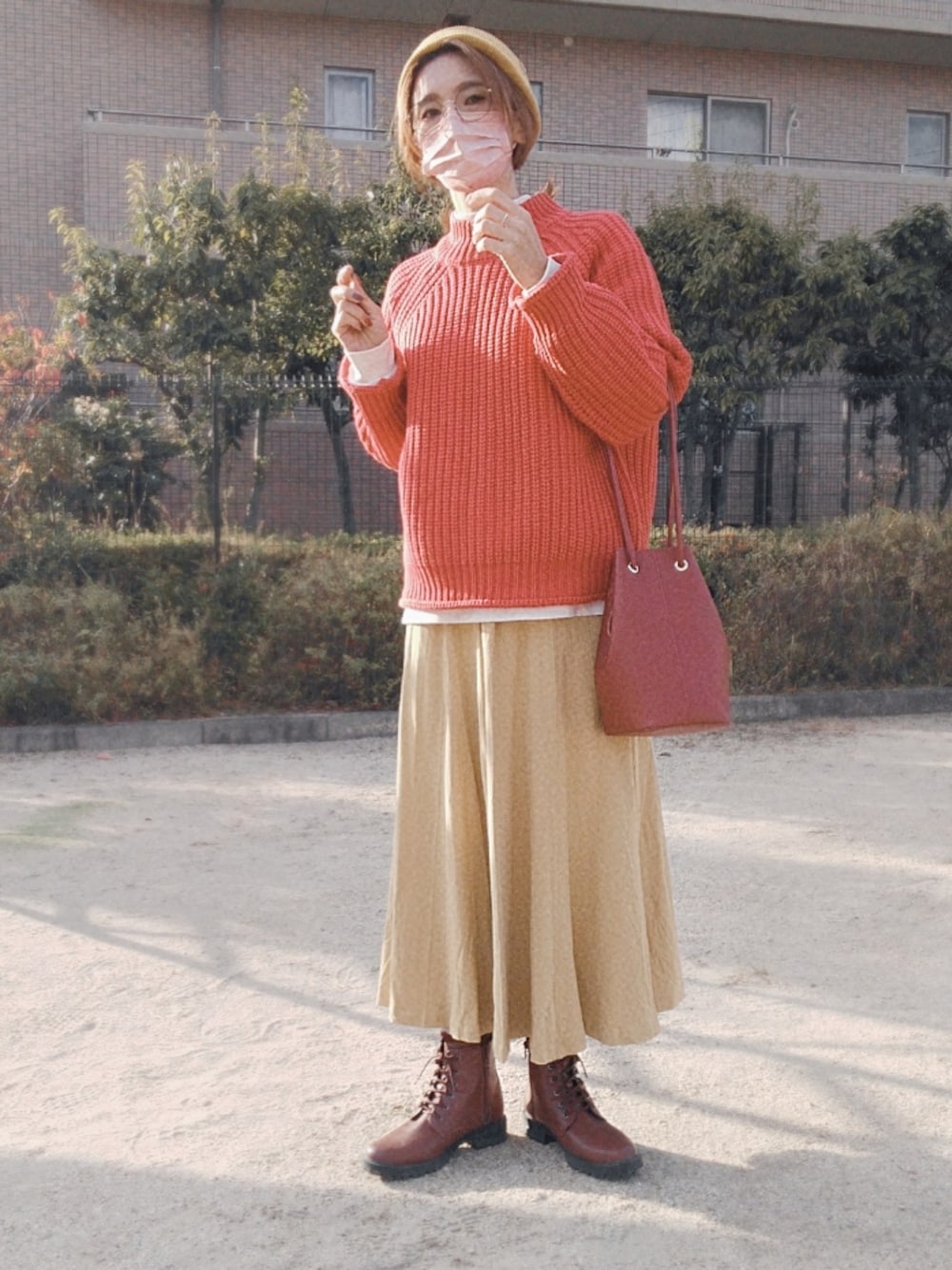 見ていただいてありがとございます! いいねもお気に入りも嬉しいです(♡˙︶˙♡) 今日はこのニットの色味がちゃんと写って嬉しい❣️ ほんと綺麗なオレンジ色なんだよ〜🍊 いつも玄関前で撮るから、壁の赤みが映り込んで 全体的にイメージ変わっちゃうのが悩み🤔💭 一応カラー調整とかしてみるけど、 上手く赤みを消すの難しいよね( ˘•ω•˘ ) フォトショとかまで使うのは面倒だし、 カメラアプリ内の機能で何とかしたいし。。。