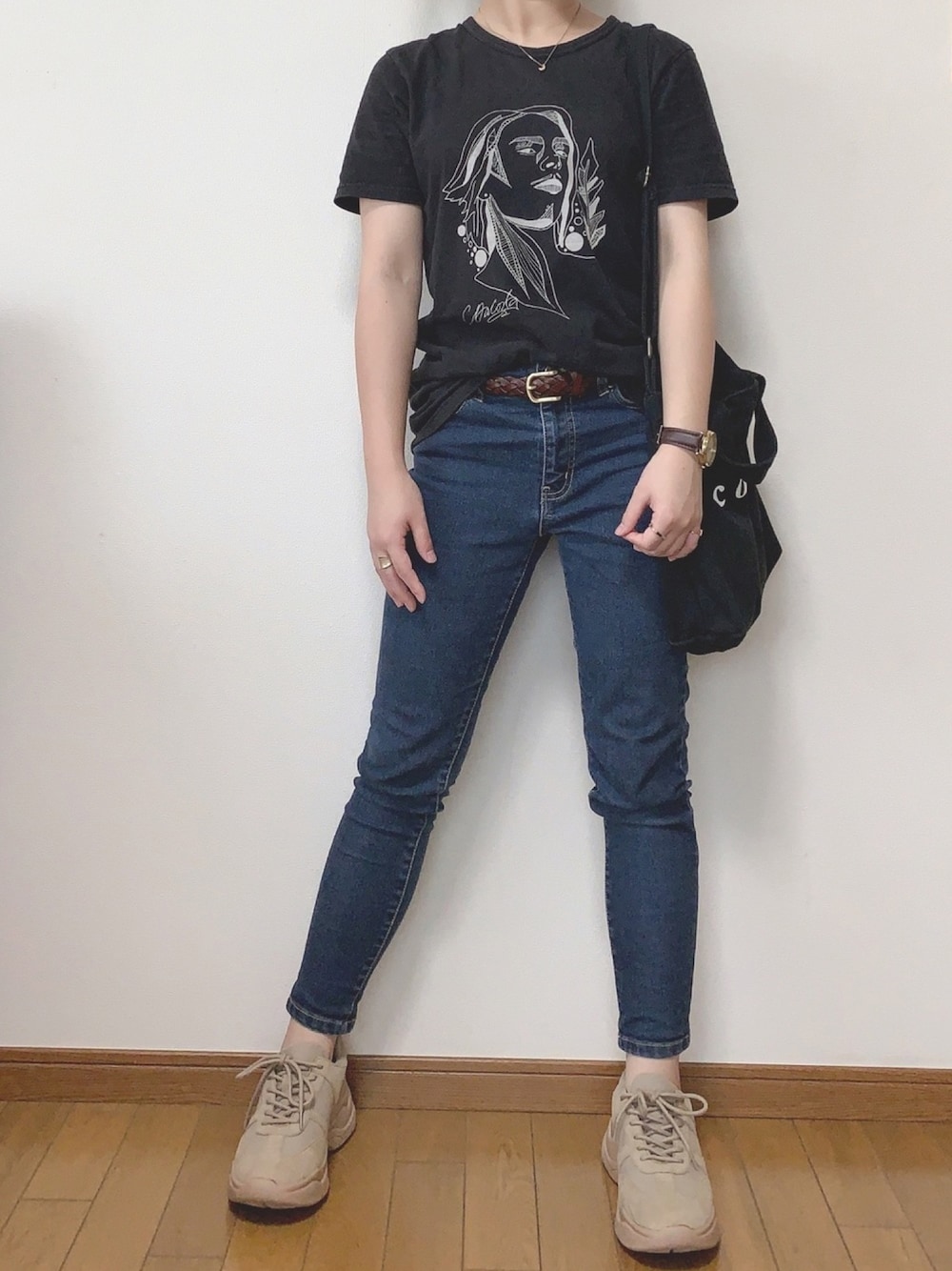 おはようございます 見にきていただきありがとうございます☺︎ カジュアルコーデです 古着屋で一目惚れして買ったTシャツでコーデ組んでみました☆ 小物をゴールドで揃えて統一感を出してみました‼︎