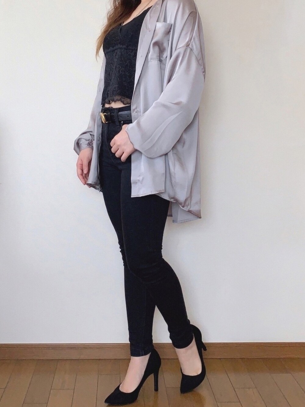 maruuのシャツ/ブラウス「【Mayree】ヴィンテージサテン オーバーサイズシャツ 2021SS」を使ったコーディネート