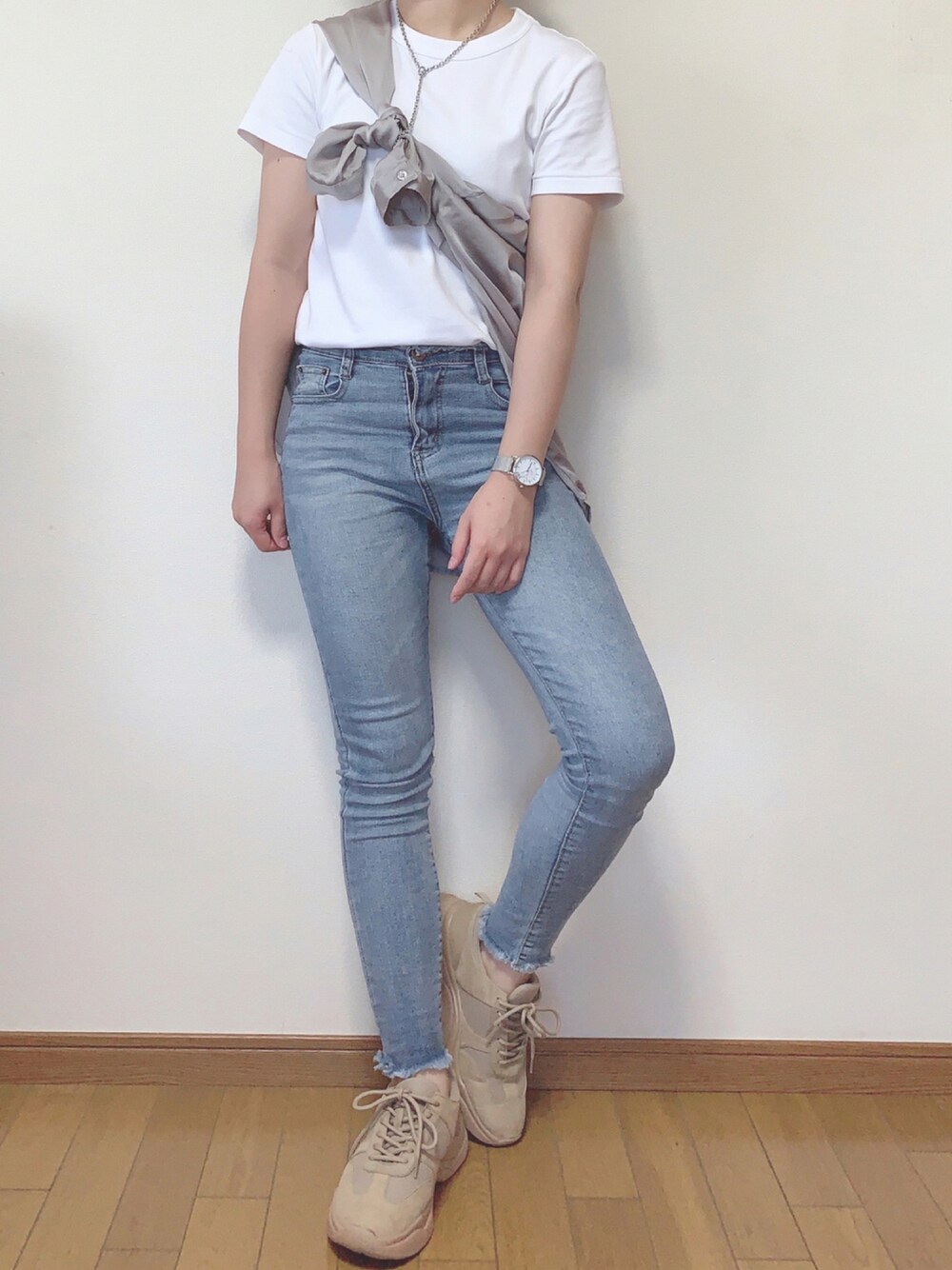 流行ってる?シャツ巻くコーデ やっと出来た˚✧₊⁎ ドヤ😎これで合ってるのかどうなのか、