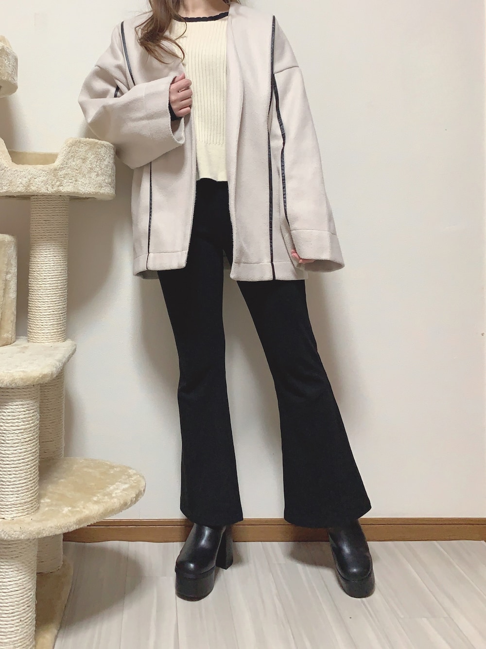 シンプルコーデ👑 キャットタワーの存在感すごいな笑 どかして撮らないと気が散っちゃいますね💦