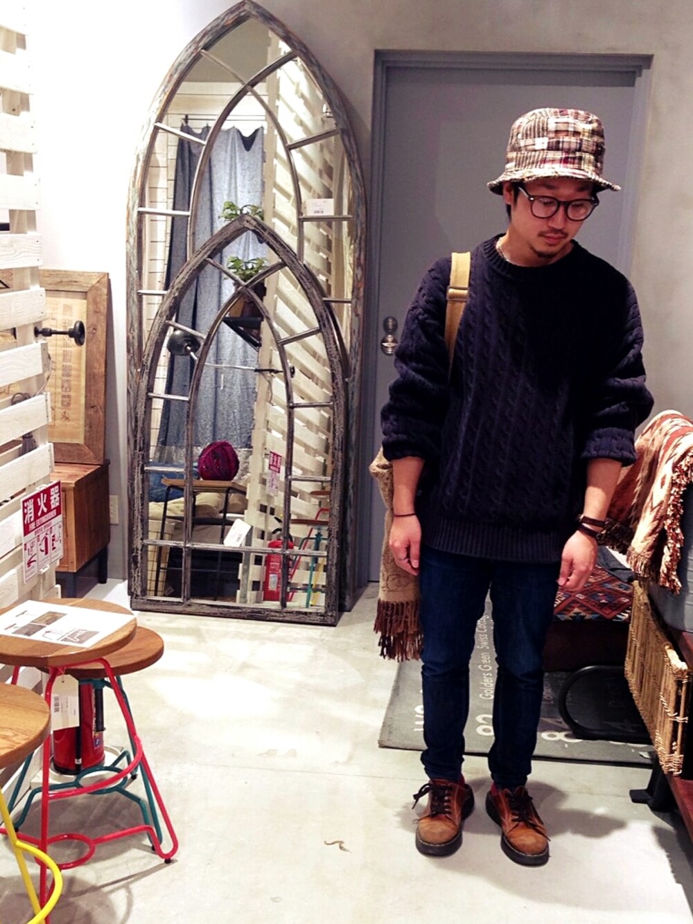 maaaavooooのニット/セーター「usedオーバーニットに UNIQLOのウィメンズのスキニー usedのドクターマーチン」を使ったコーディネート