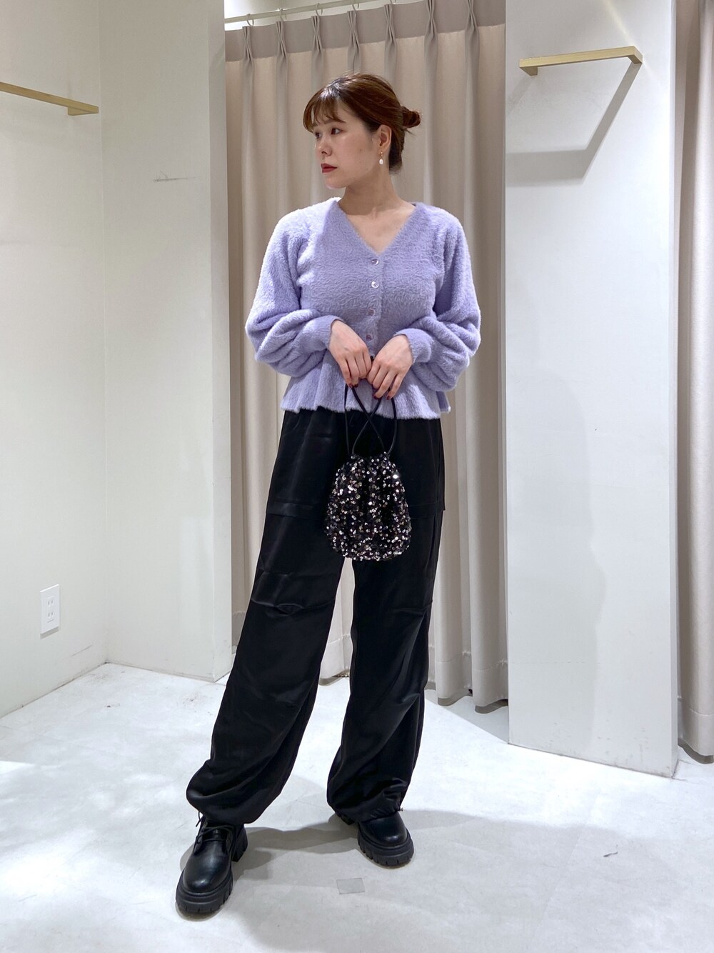 ************************* 骨格:ストレート パーソナルカラー:ブルベ夏 普段サイズ:S ************************* ・ショートシャギーペプラムニットカーディガン (パープル/フリーサイズ) チクチクしづらい滑らかな触り心地!Vネックが深すぎず一枚でも◯今は羽織、冬はトップスとして着たい! ・サテンパラシュートパンツ (ブラック/Sサイズ) 157cmで足は短め、裾がドロストで引きずらない!冬は中に重ねれば重宝しそうな素材♡ボリュームのあるブーツと相性◎ ・レースアップブーツ(ブラック/Mサイズ) 23.5cmで程良い肉厚靴下と合わせてちょうど良いくらい。チラッと見えるリブニットが、見栄えと機能性◎レースアップブーツ特有の着脱しづらさが無かったです!