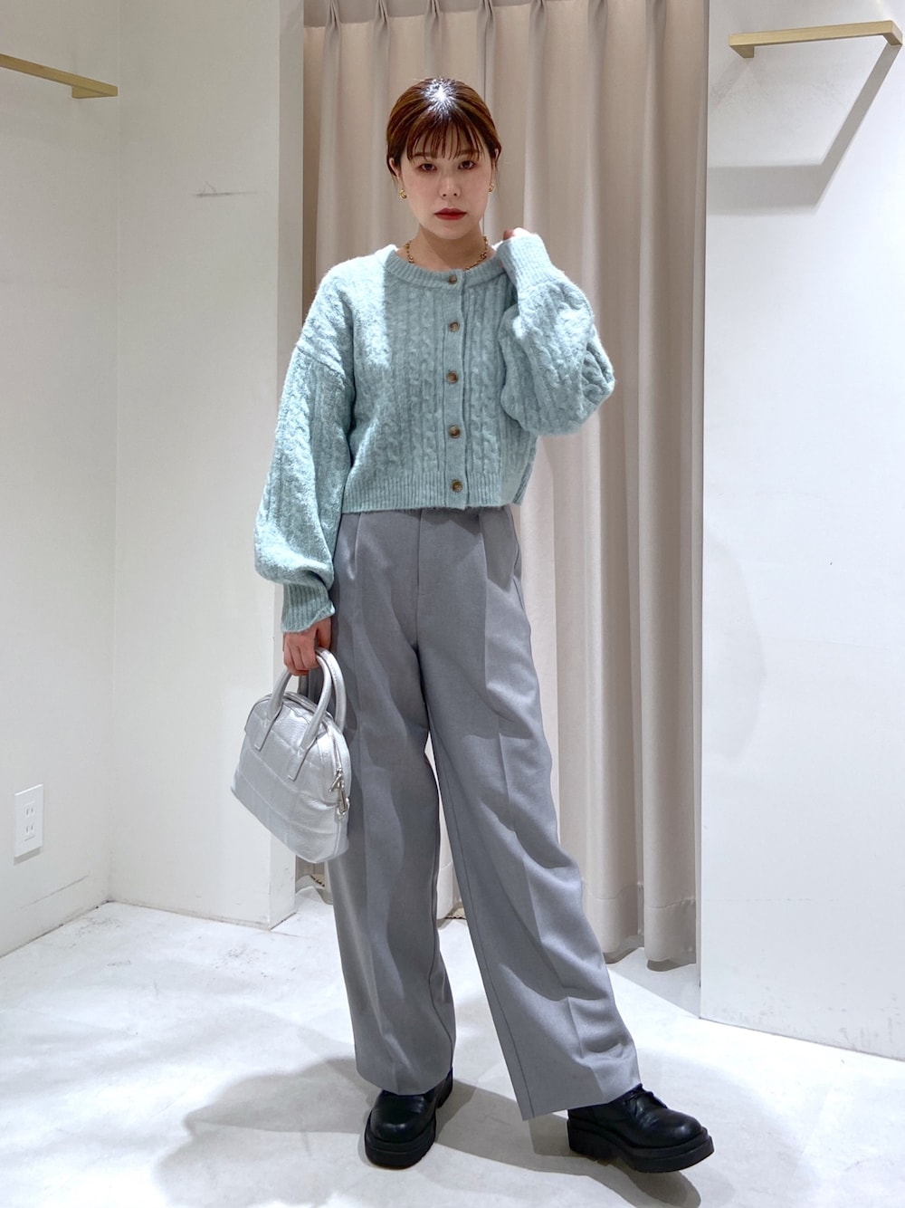 ********************* 骨格:ストレート パーソナルカラー:ブルベ夏 普段サイズ:S ********************* ・ニット(グリーン/フリーサイズ) 厚すぎず軽い素材です!ドロップショルダーで肩周りはボリューム控えめ。裾幅はありますがケーブルリブ×短丈でウエストすっきり! ・パンツ(グレー/Sサイズ) ハイウエスト×ウエストタック入りでお腹周りのカバー有り◎センタープレス入りで胴長な私も足が長く見えました! ・ブーツ(ブラック/Mサイズ) 高低差があまり無く履きやすい!23.5cm、幅は広め・甲の高さは普通で靴下重ねてMサイズ。