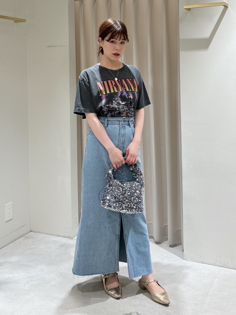 maaya(FREE'S MART 札幌アピア)のデニムスカート「◆フロントスリットナローデニムスカート」を使ったコーディネート