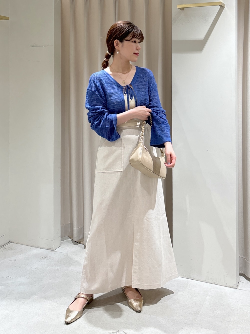 ******************* 骨格:ストレート パーソナルカラー:ブルベ夏 普段サイズ:S******************** ・カーディガン(ブルー/フリーサイズ) 細かいメッシュ網なの涼しいです!着丈がおへそ上くらいの短め。ワンピースの羽織にもおすすめです! ・キャミソール(ホワイト/フリーサイズ) 生地が柔らかく着用感がとてもよいです!ストラップにアジャスターが付いているので自分の高さに合わせる事が出来ます◎ ・スカート(ホワイト/Sサイズ) ハイウエストでウエストラインがすっきり見えます!麻混なので夏らしい風合いがポイント♡身長157cmでSサイズを履くとくるぶし隠れるくらいの長め丈でした! ・くつ(ゴールド/Mサイズ) クッション入りで軽いです!私は旅行などの長距離移動でも疲れませんでした!