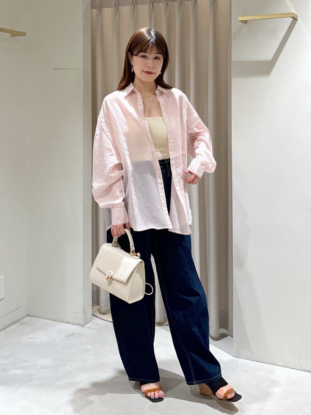 ******************* 骨格:ストレート パーソナルカラー:ブルベ夏 普段サイズ:S************* ・シャツ(ピンク/フリーサイズ) さらっとした肌触りで涼しいです!少し透け感があります。肩から手首まで袖幅がしっかりあるので重ね着もしやすいです! ・キャミソール(ホワイト/フリーサイズ) カップ付、裏にゴムが入っておりしっかりフィットします。 ・デニム(ネイビー/Sサイズ) Sシリーズになり、前回のSサイズよりもウエストは変わらずヒップサイズが小さくなったことで、スタイルアップ効果を私は感じました! ・くつ(ブラック/Mサイズ) コルクソールなので軽いです!