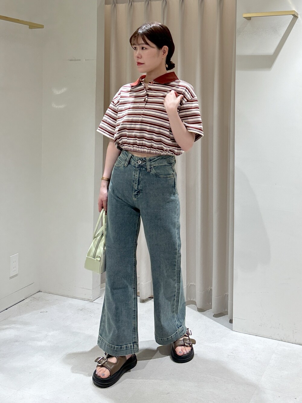 maaya(FREE'S MART 札幌アピア)のポロシャツ「ボーダーポロクロップドトップス」を使ったコーディネート