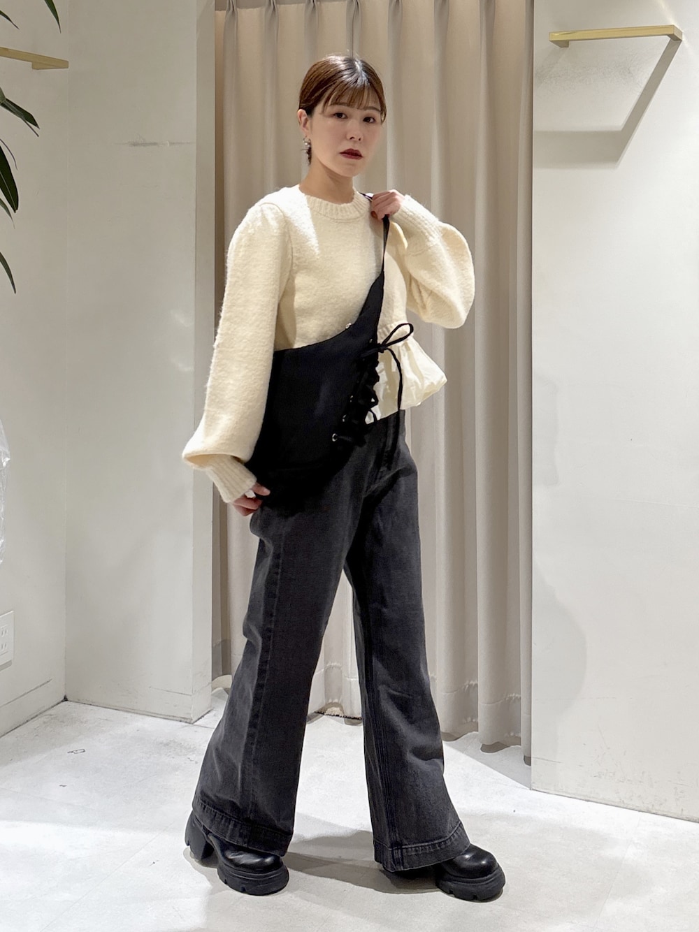 maaya(FREE'S MART 札幌アピア)のニット/セーター「アルパカ混布帛ドッキングバルーンニット」を使ったコーディネート
