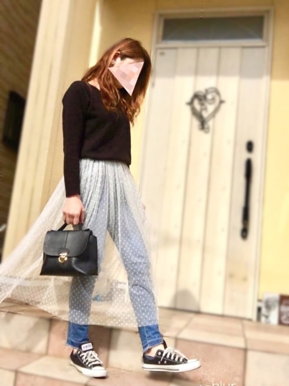 Maya☺︎のニット/セーター「カシミヤタッチVネックニット【イロチ買いニット】」を使ったコーディネート