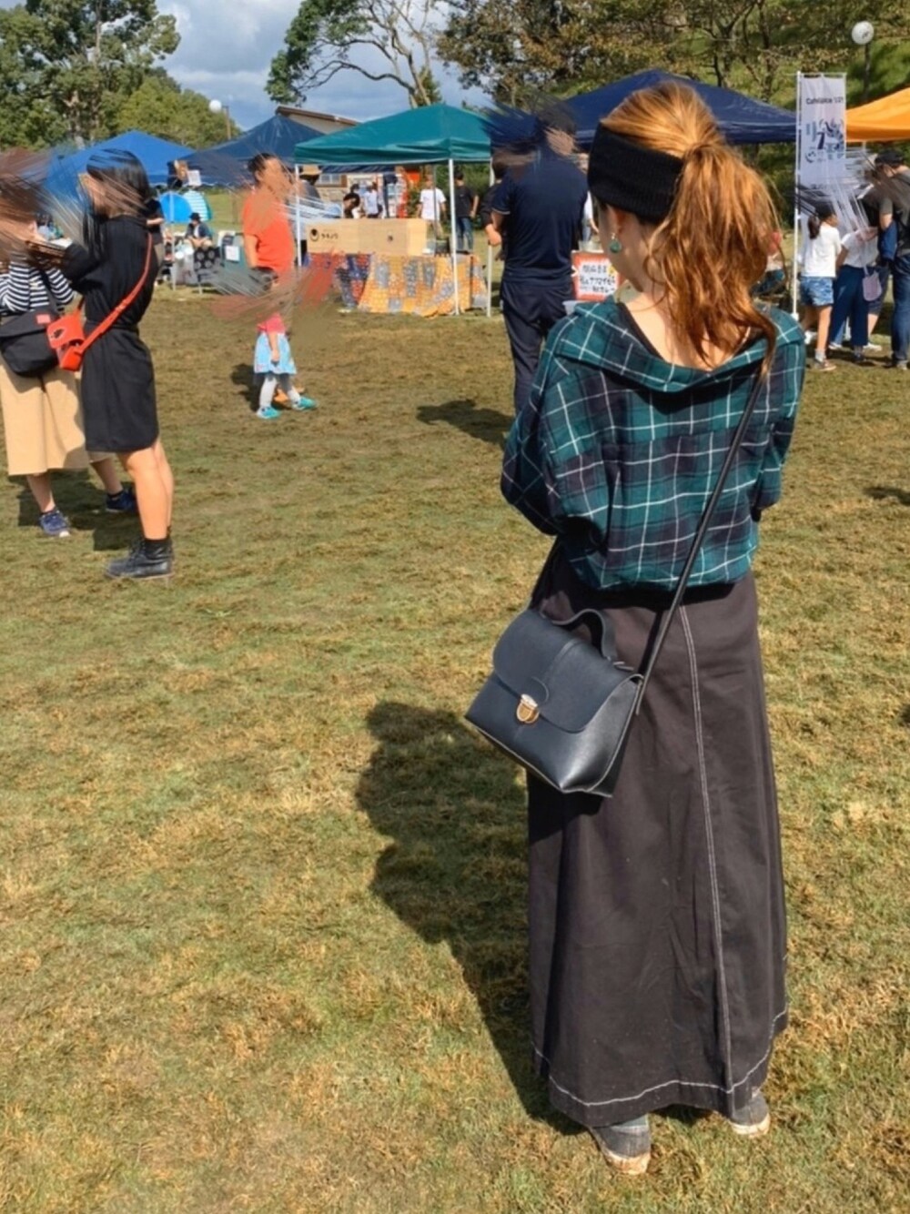 ユニクロのチェックシャツコーデ☺︎💚 辛いの苦手やのにカレーフェス🍛♡ 雨上がりの公園でコンバースとスカートの裾がドロドロなのはスルーしてください🤫🙏🏻