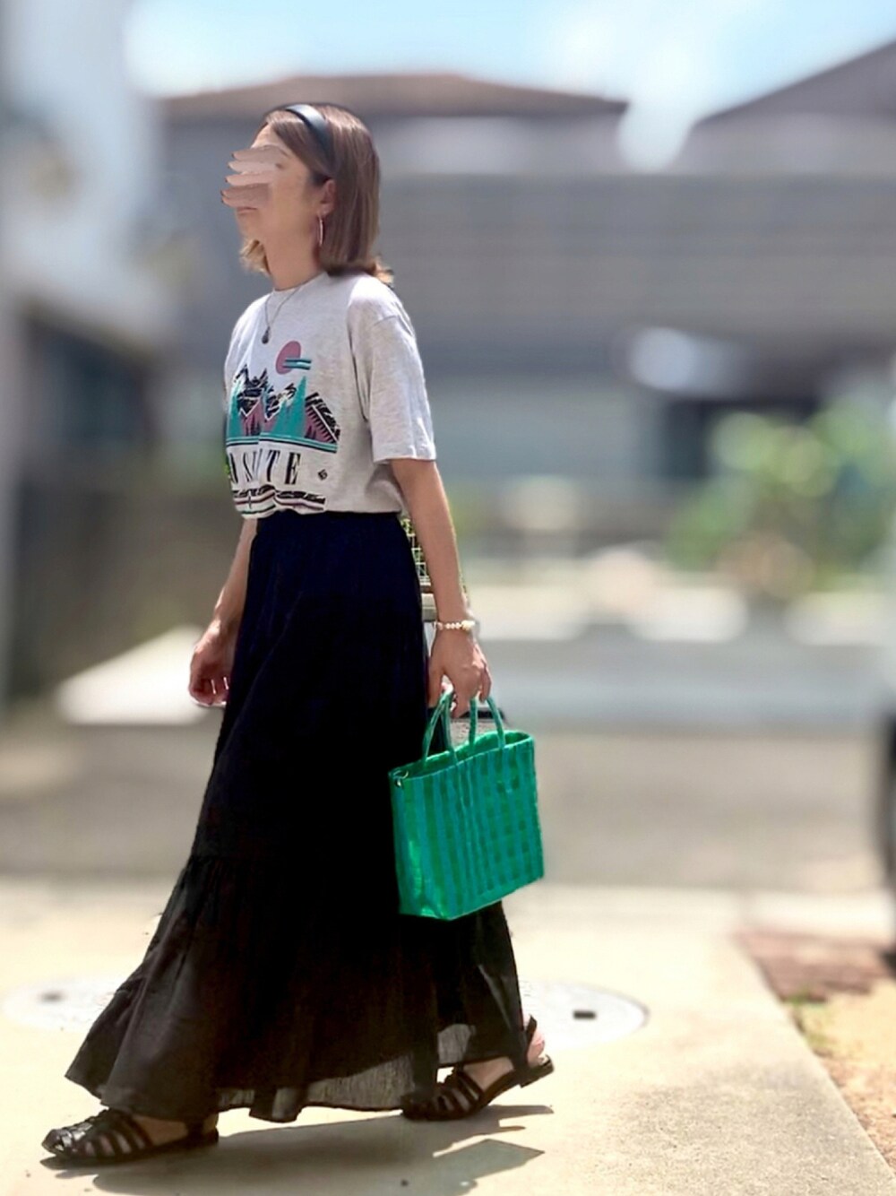 niko and...のスカート グリーン買って可愛くて セールで激安やったから←これ1番🤣 イロチもget🙌🏻♡♡ 前にグリーンにも合わせてたTeeなんやけど スカートの色違うと雰囲気も全然違う♡...気がしてる🙃🙃
