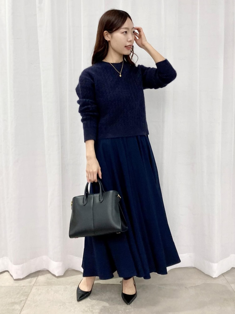 トップス:Fサイズ着用 スカート:38サイズ着用 パンプス:36.5サイズ着用 こんにちは! いつもご覧いただきありがとうございます。 今回は 毎回大好評のエディター三尋木奈保さんとの コラボスカートを着用しました! 揺れ感が素敵で ポケットもある実用的なスカートです◎