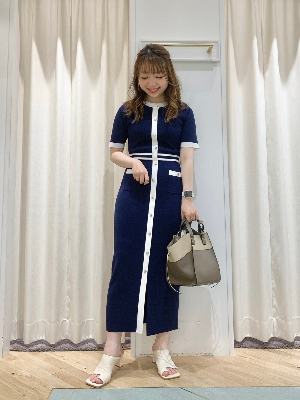 1着でスタイルが完成する正統派ワンピ♥ 体のラインを拾い過ぎずスタイルアップ効果も◎ Instagram ♡⃛ @_mayu_am